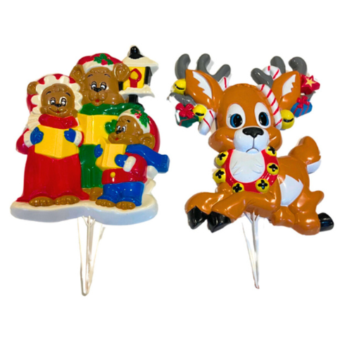 Vintage Plastic Mold Christmas Lawn Decor Stakes NEW DESINS INC. - Flaw on Santa