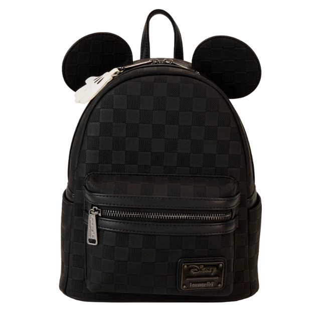 Elevate your Disney style with this sophisticated take on a classic icon. This Loungefly mini backpack features a sleek, tonal black checkered pattern (Evergreen collection) that offers a modern, high-fashion look while staying true to the Disney magic with those unmistakable Mickey Mouse ears.