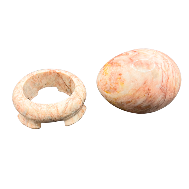 Natural Marble Egg Pink Beige Swirl with Carved Display Stand - Polished Stone Decor