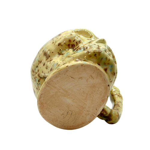 Unique Skeleton Skull Ceramic Coffee Mug Handmade Brown and Blue Splatter Drip Glaze Signed