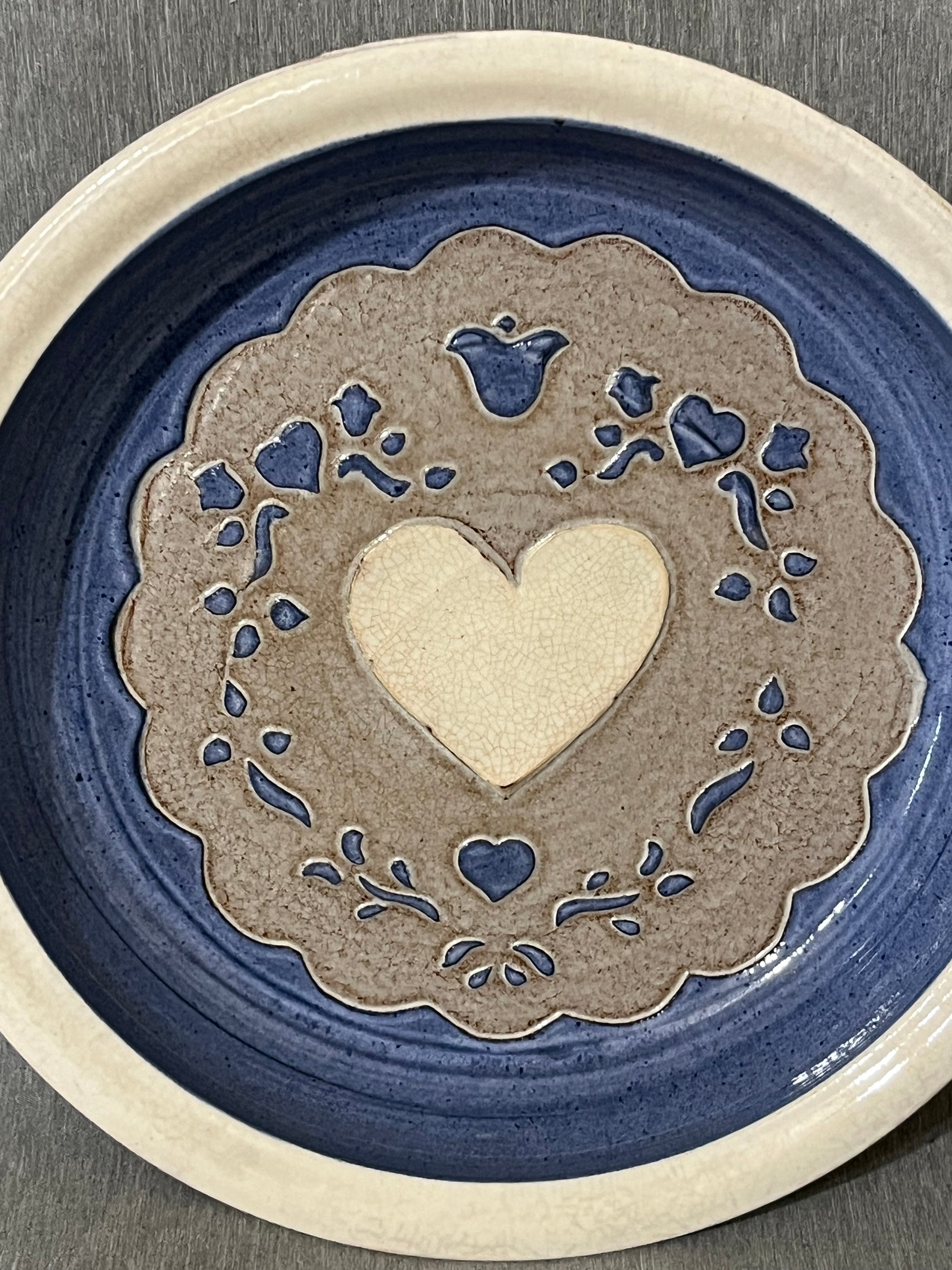 Vintage Clay City Pottery Stoneware Folk Art Pie Plate Heart