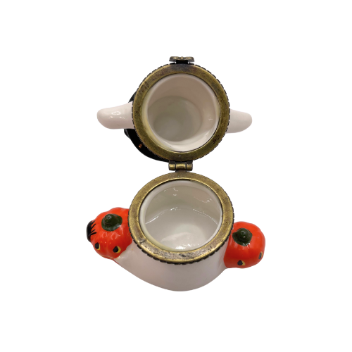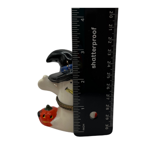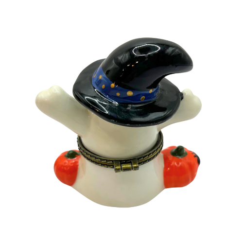Vintage Halloween Ceramic Hinged Trinket Treasure Box, Ghost Witch Hat and Pumpkins