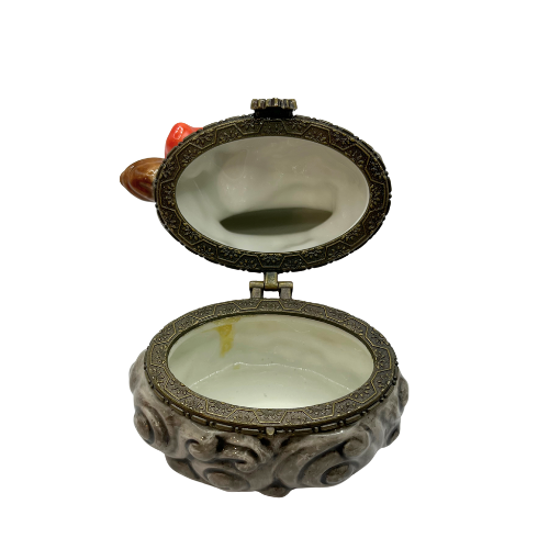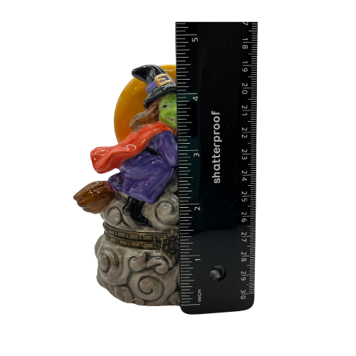 Vintage Halloween Ceramic Trinket Box Witch Flaying past The Moon