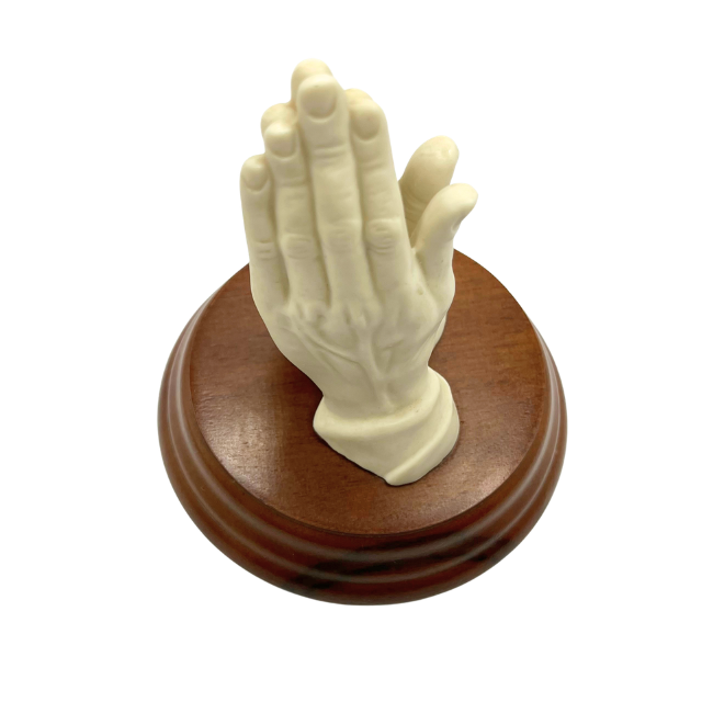 Vintage Porcelain Praying Hands Figurine 4.5" on Wooden Base - 1960s Religious Statuette