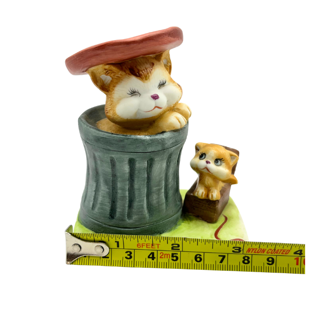 Vintage UCGC Bisque Cat and Kitten Trash Can 4" Figurine Made in Korea