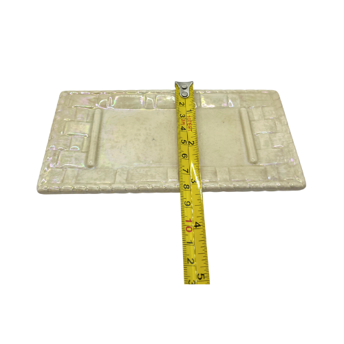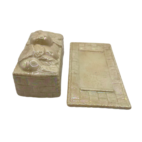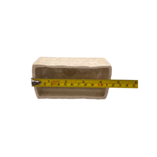 Vtg Ceramic Butter Dish Basket Weave Fruit and Floral Design Iridescent Cream Glaze 1970s Kitchen Decore