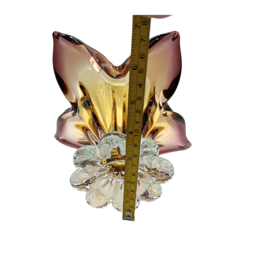 Vtg Murano Style Butterfly Pedestal Bowl Hand Blown Cranberry Amber Omber